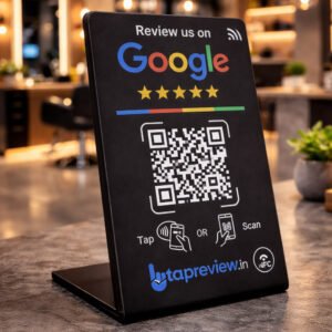 Boost your business reputation instantly with our PVC QR & NFC Google Review Stand, specially designed for Indian businesses looking to increase genuine Google reviews effortlessly.