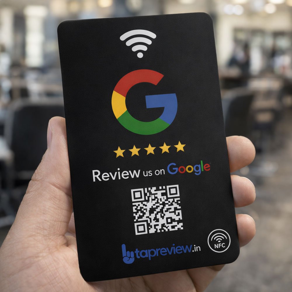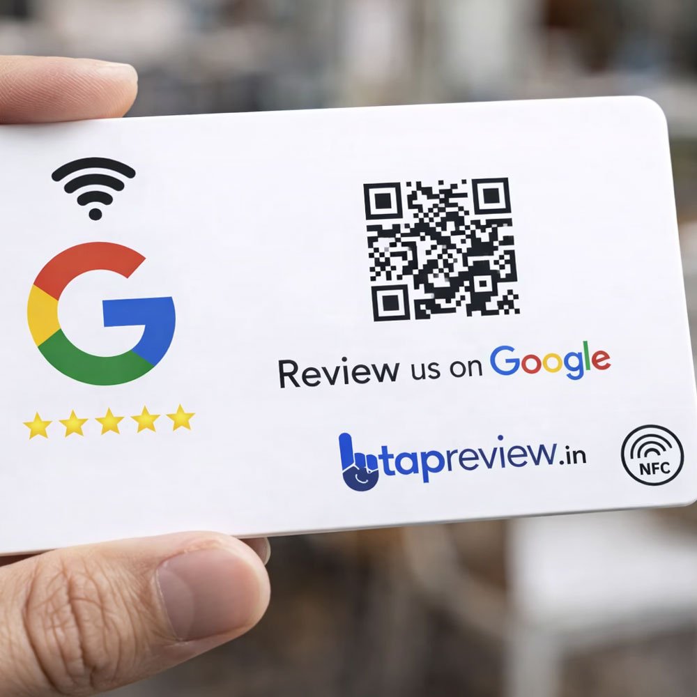 Boost your business reputation and collect more genuine Google reviews with the 1TapReview QR & NFC Google Review Card. Designed specifically for Indian businesses, this premium plastic card allows customers to leave a review in seconds using either QR scan or NFC tap technology.