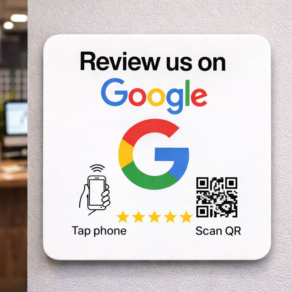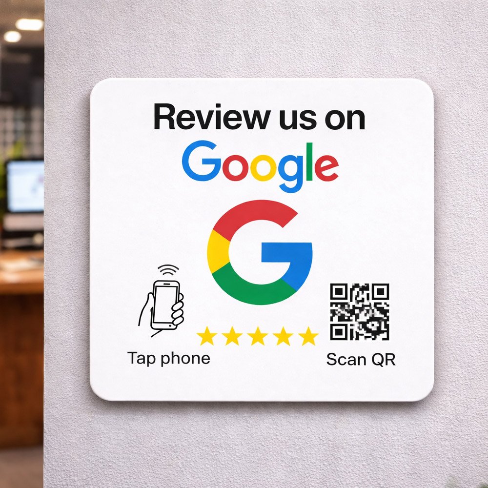 The square-edge design provides a bold, clean look that fits perfectly in retail stores, hospital receptions, restaurant entrances, and office waiting areas. Install it on your wall near billing counters or entry points to encourage customers to leave quick and genuine Google reviews.